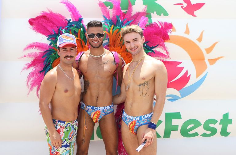 5. People don’t wear a lot of clothes to FlockFest. But that didn’t stop a top designer from getting a cabana and showing off his wares. Underwear mogul Andrew Christian brought his best summer 2023 designs and plenty of models to show them off.