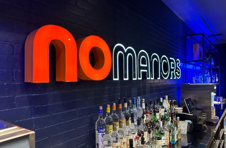 Wilton Manors' newest nightclub, No Manors, opened in September in the Shoppes of Wilton Manors, tucked away between a liquor store and pizza shop. Despite its unassuming exterior, inside the bar boasts a New York City vibe with a spacious main bar, ample seating, and a secondary bar with a distinctly Floridian atmosphere, highlighted by pink flamingo wallpaper.